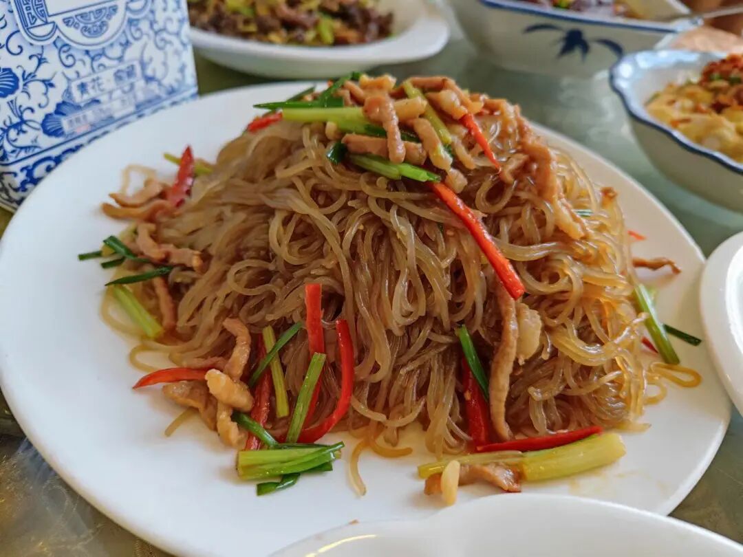江西地区自古以来便是鱼米之乡,红薯在江西广泛种植,红薯粉丝也是当地的一种特色美食,薯粉炒肉丝是很多宴席上都会出现的主食菜品。