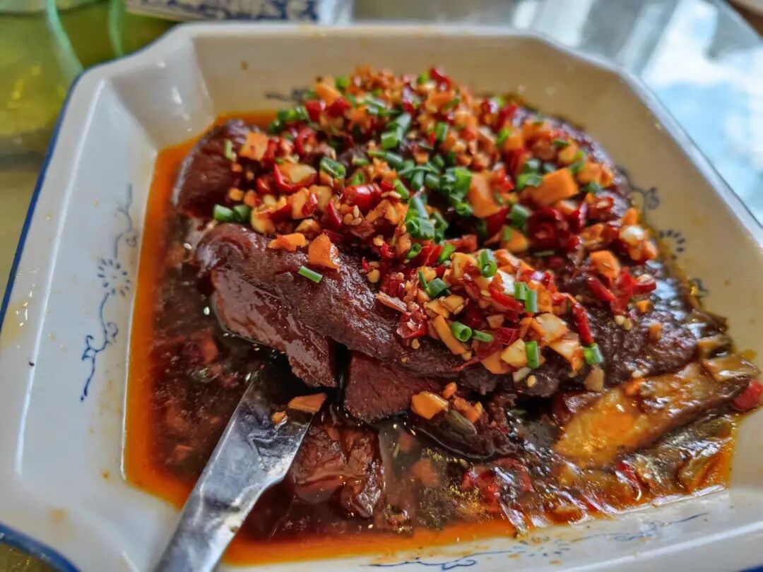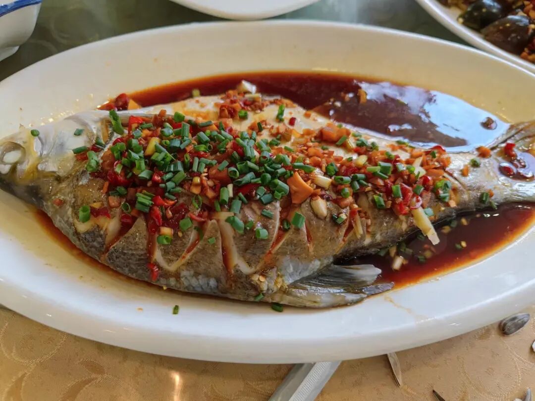 清蒸鳊鱼是江西当地宴席上常见的一道菜品,江西人爱吃辣,虽然是一道清蒸菜,但其实上面的酱汁放的却是辣椒汁。