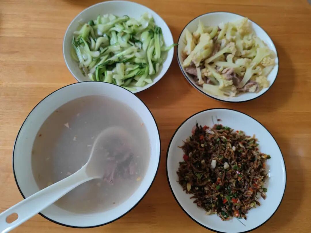 周四晚餐也是三个菜,不过没有煮米饭,只煮了一碗汤粉。三个菜一个主食加起来花费了12元。