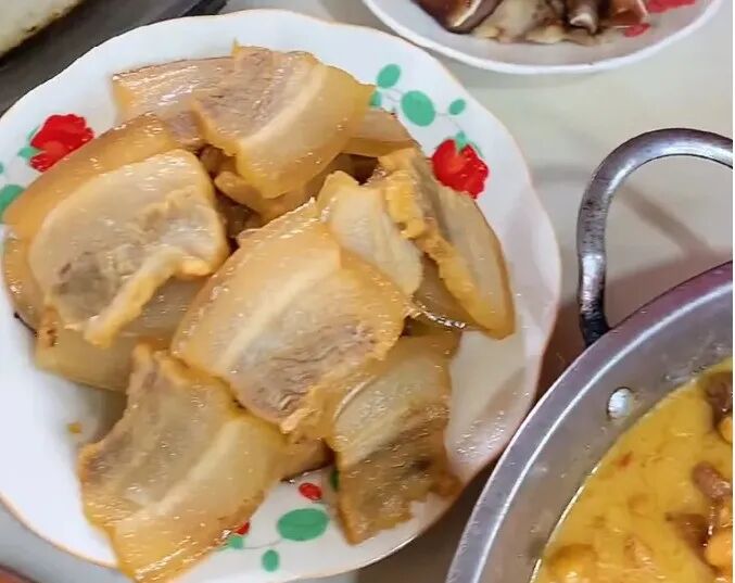 暴晒了2个月的腊肉,看起来很油腻,但其实此时的腊肉最美味,小时候只要给一块小小的腊肉,江西女子表示自己都能够吃掉一碗白米饭。
