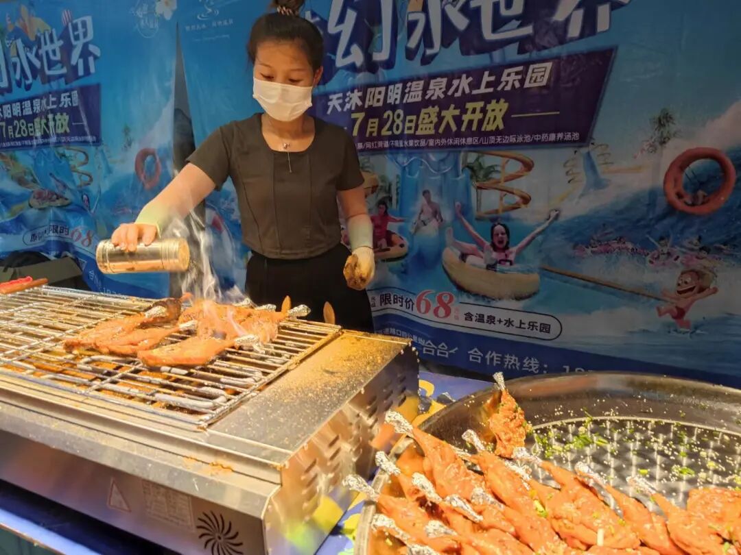 烤兔腿价格15元一个,可以选择辣味和不辣的两种口味,这个小县城的人们平时很少吃兔肉,看见烤兔腿都会感到比较新奇,如今正是放暑假期间,不少小朋友们看到后嚷嚷着要吃。