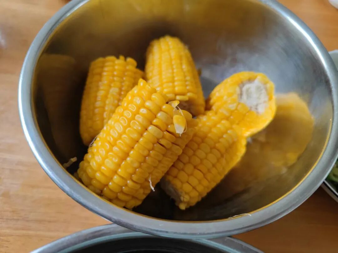 为了保持身材,女朋友很爱吃玉米红薯之类的五谷杂粮,不喜欢吃米饭,袁杰林为此在超市里买了3根玉米回来做主食。
