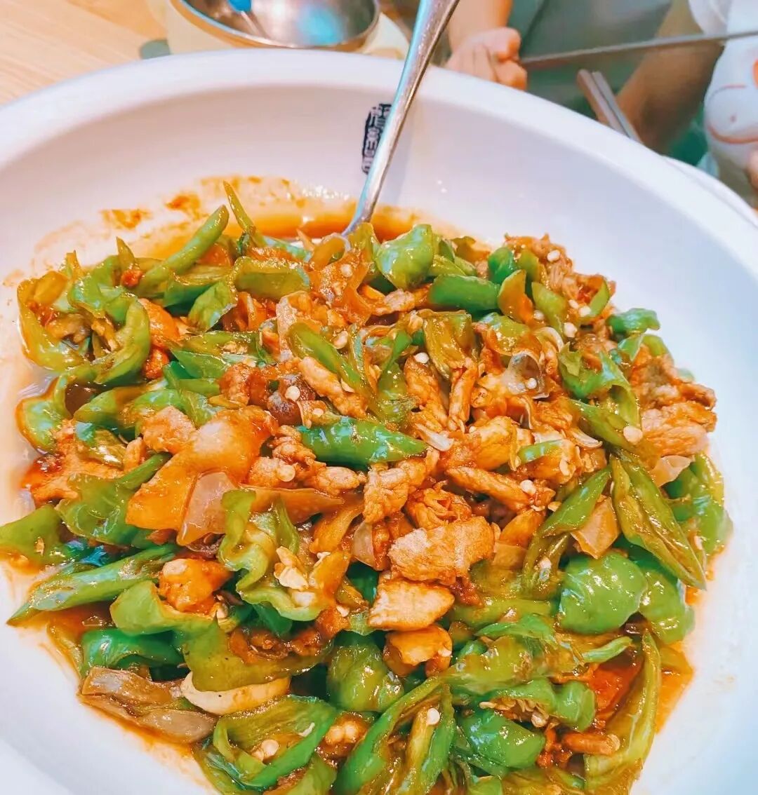 辣椒炒肉的盘子很大,里面辣椒比猪肉更多,看着这么少的猪肉,蒋宝涛心里有点捣鼓,拿起筷子品尝了一下,发现辣椒比肉更好吃。