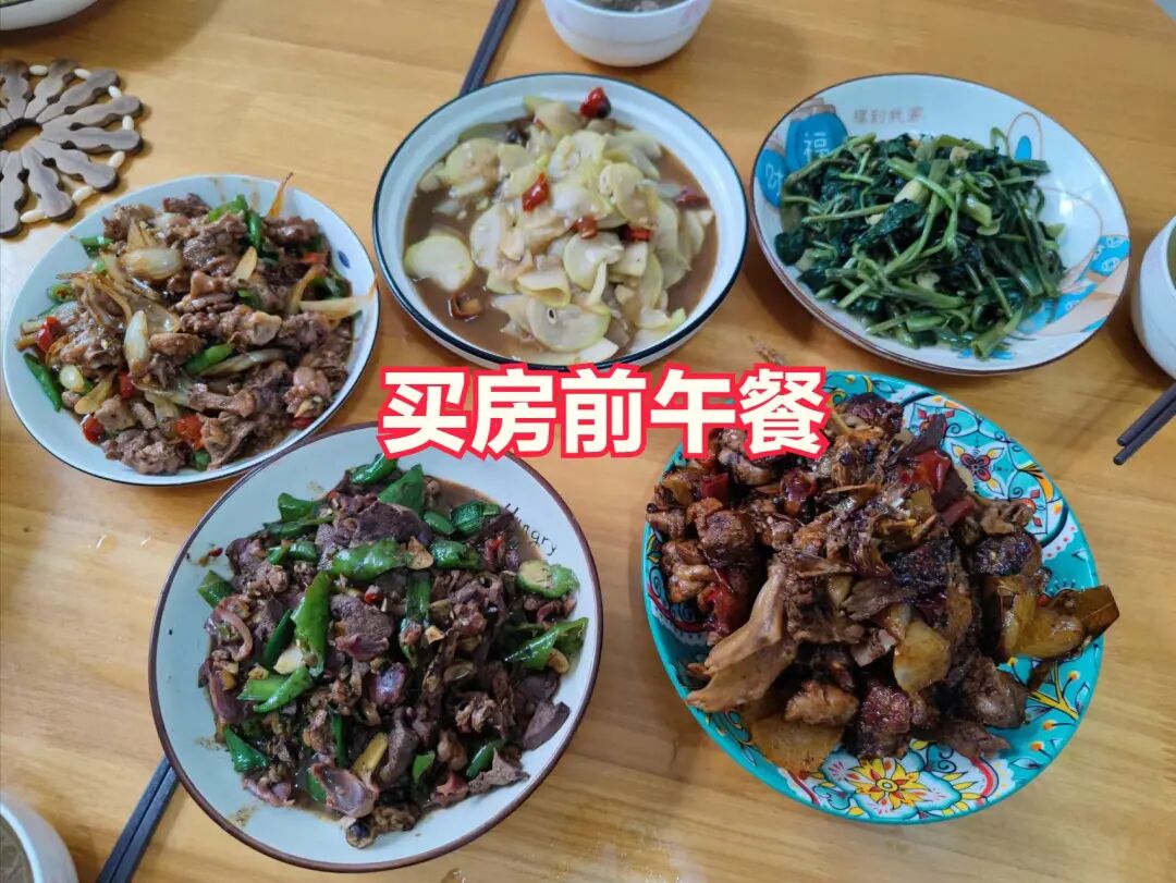 但是买房后午餐也开始改变了,纯肉菜越来越少,变成了荤素搭配的肉菜,而且基本上都是吃猪肉为主,鸡鸭鱼肉变少了,不是不爱吃了,而且猪肉最实惠,其他的都感觉力不从心,不能天天吃。