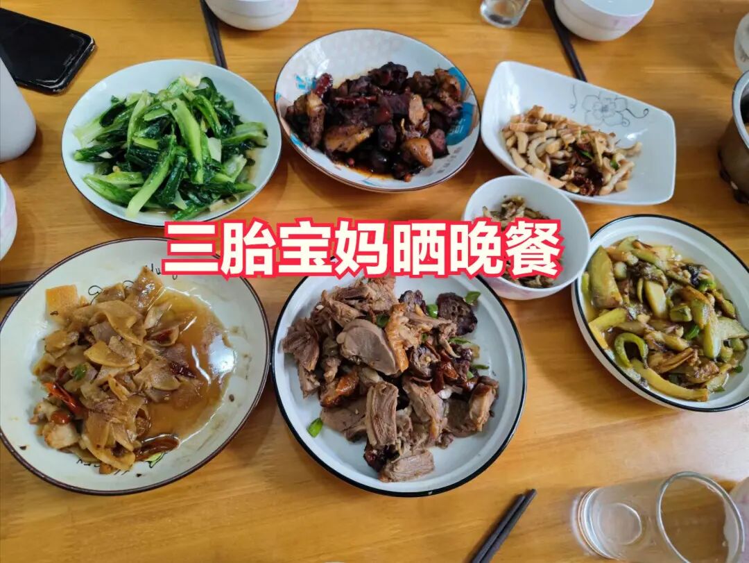 李雪莲将自家晚餐晒了出来,发文表示:“晚餐很丰盛,婆婆手艺很不错,我准备生第4胎了。”