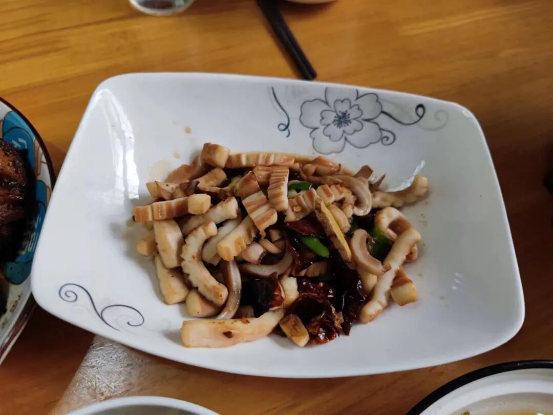 香辣鱿鱼是丈夫爱吃的一道菜,将鱿鱼切成小条状,然后锅中和小米椒蒜头一起爆炒,越辣越够味,江西人吃海鲜喜欢重口味,不像广东福建喜欢清淡口味。