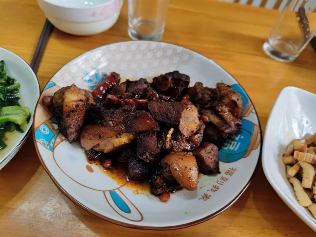 桌子上还有一道小孩纸们爱吃的菜:小鱼干,这是乡下亲戚从小河里捞的小鱼,晒干之后送过来给孩子们吃的,口感比新鲜的草鱼还更美味,深受孩子们的喜爱。