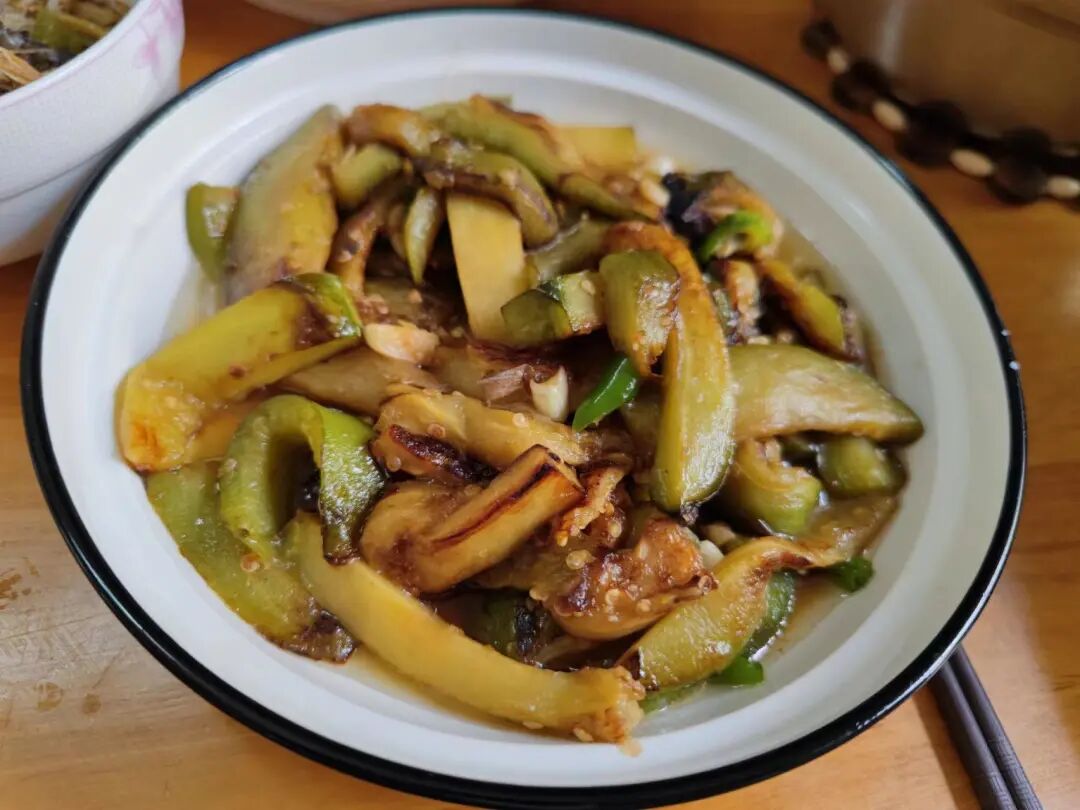 红烧茄子是李雪莲很爱吃的一道菜,婆婆将茄子切成条状,放入锅中油炸一遍,然后捞起控干油脂,锅中再放入蒜头炒香,下入油炸好的茄子翻炒片刻,加入生抽蚝油食用盐等调味料,再放入罗勒叶,一道风味十足的茄子做做好了。