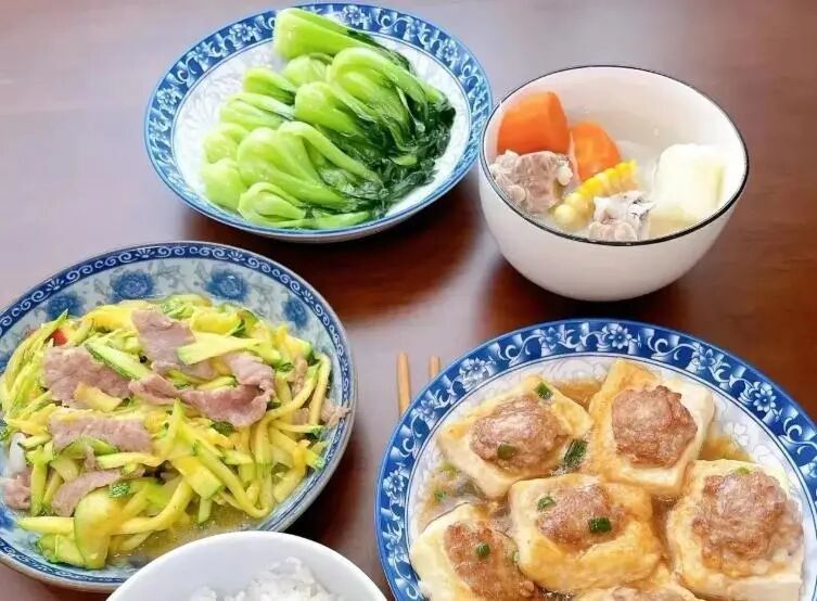苏晓琴的江西闺蜜也晒出了月子餐,有江西客家人爱吃的酿豆腐,有上海菜心,有排骨玉米汤,还有南瓜炒肉,两个荤素搭配的菜品,一个蔬菜,一个汤。
