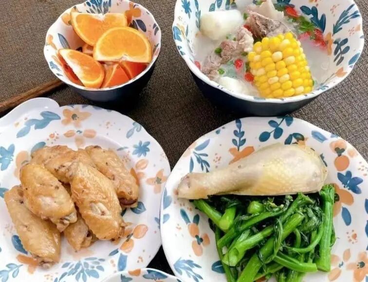 苏晓琴的湖南朋友也晒出了婆婆做的月子餐,菜品也是非常的丰富,有鸡腿,玉米排骨汤,清炒菜心,可乐鸡翅,还有她爱吃的脐橙。