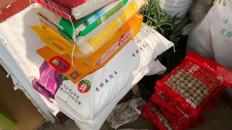 于是二老走到小区楼下的超市,买了4袋大米,1袋面粉回来,大米有30斤的,也有50斤的,买得多,超市老板也很贴心安排人将大米和面粉扛上周杰林所在的4楼。