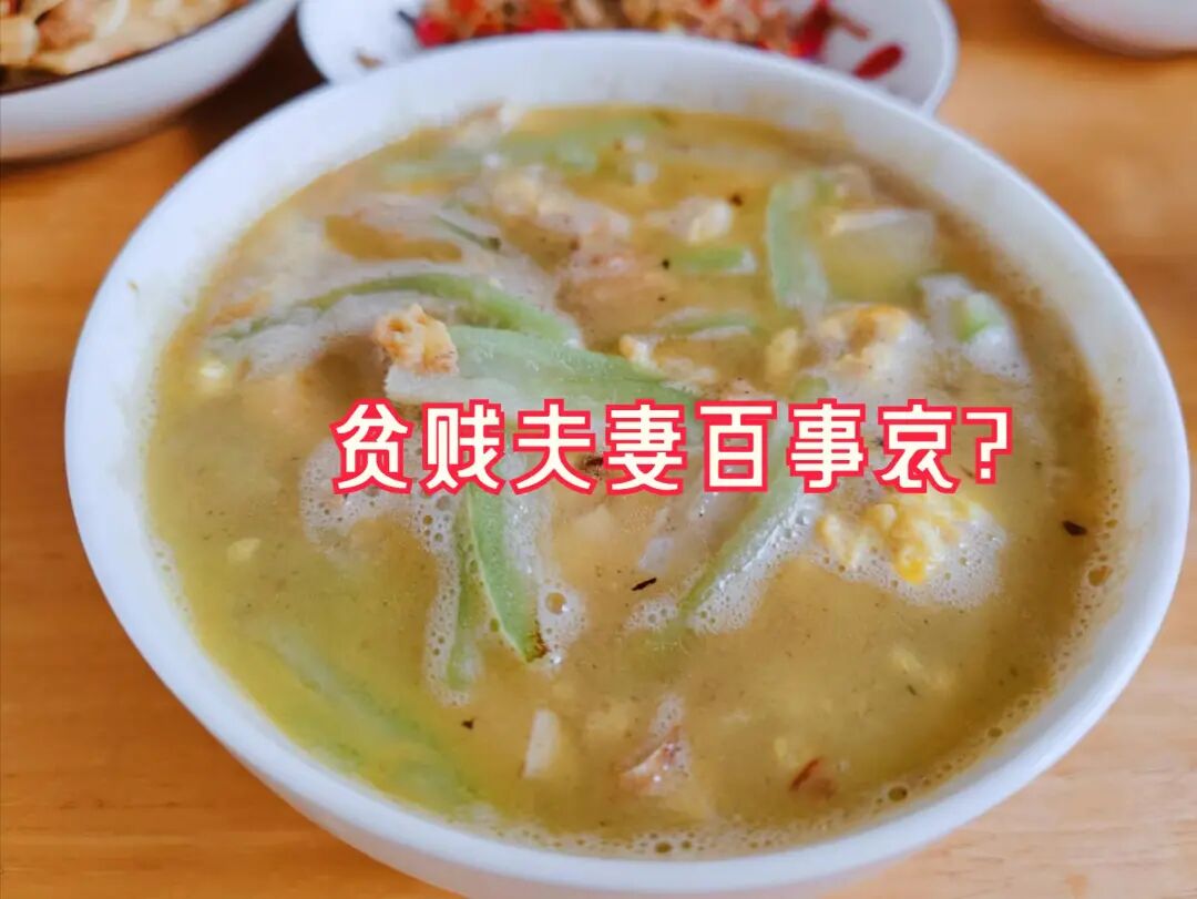 最后一碗是鸡蛋丝瓜汤,很多人都不爱吃丝瓜,但是陆曼婷从小就很爱吃丝瓜,特别是八角丝瓜,将丝瓜去皮,切成片,锅内先将鸡蛋煎熟,然后下入蒜头炒香,再放入丝瓜爆炒片刻,加入清水,水开后再放入煎好的鸡蛋。
