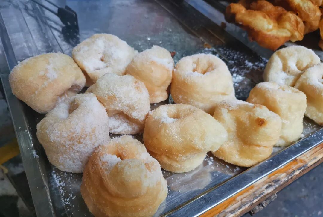 然后在上面撒入一层细腻的白糖粉,白糖粉放得越多越好吃,这个用糯米油炸的小吃很多南昌人从小吃到大,口感香甜,本地人视为珍宝。