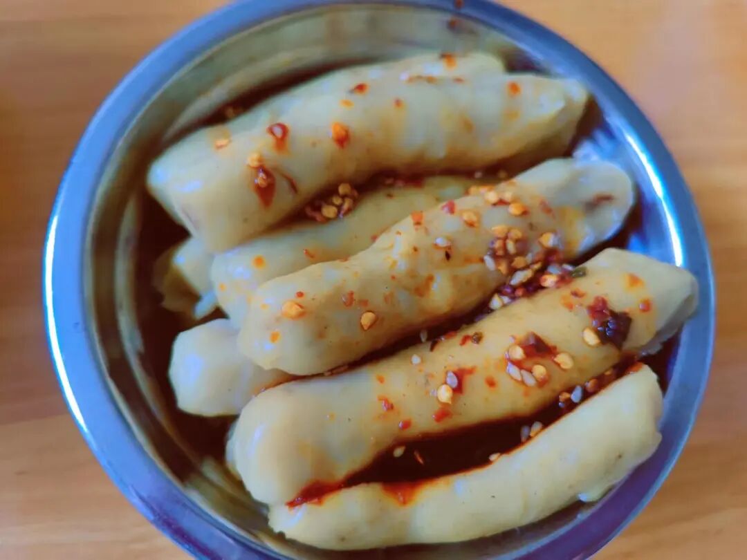 开锅后,米粿便做好了,吃的时候要蘸着辣椒汁一起吃才更美味。