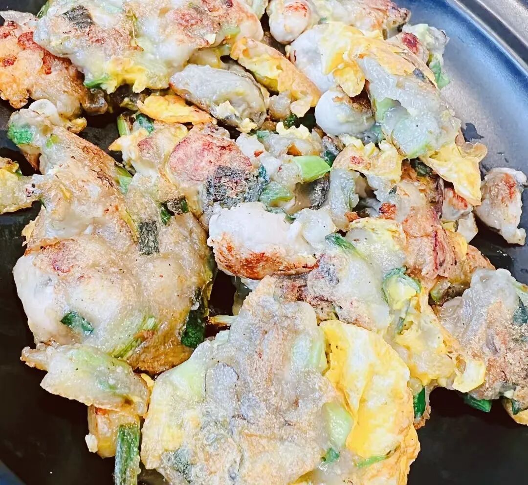 海蛎煎的食材主要是有海蛎,又称为牡蛎,以及鸡蛋,地瓜粉,香葱等食材,这道菜最麻烦的地方其实不是煎,而是如何将海蛎中的泥沙清洗干净,如果让客人咬到了沙子,牙齿生疼的话,就算是再美味的口感也会让顾客弃而远之。