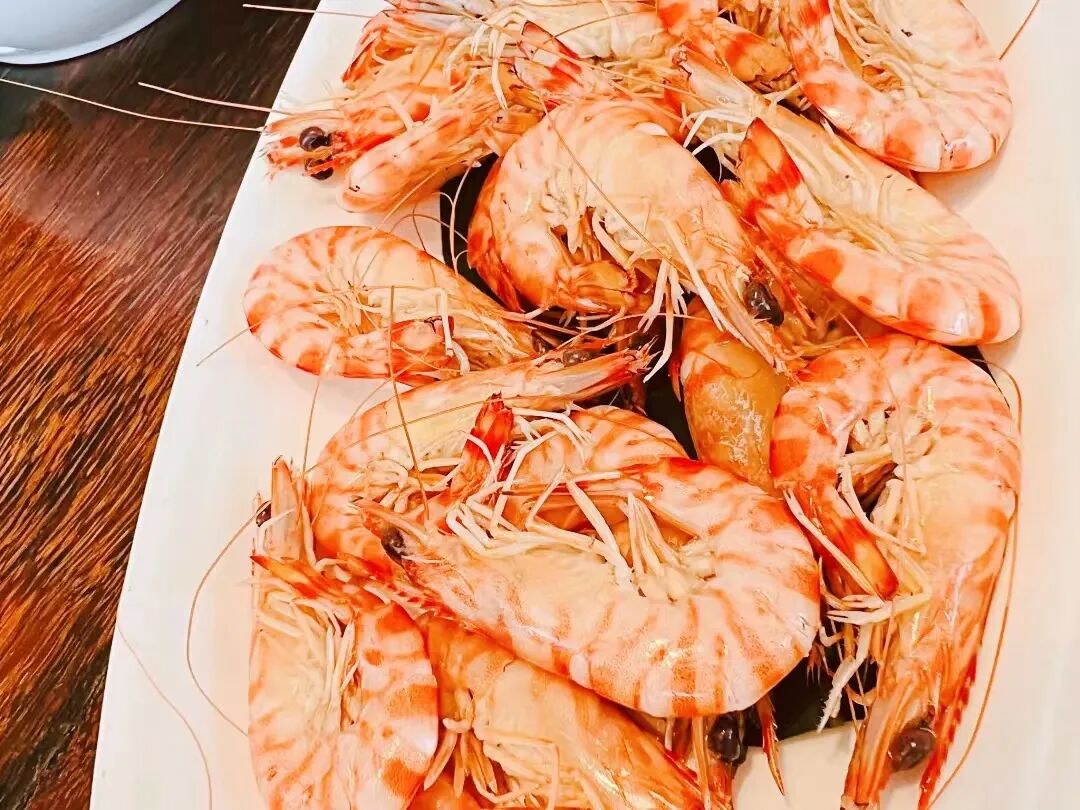第二道菜是白灼斑节虾,也是这家餐馆的特色菜品,看起来跟基围虾没有多大区别,都是红色的虾,个头中等,并不是特别大。