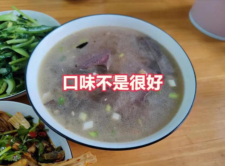 但是这次上门厨师做的这道猪血汤却是差了一点味道,特别是瘦肉没有提前用淀粉腌制,导致瘦肉吃起来很柴的口感,一点都不够滑嫩。