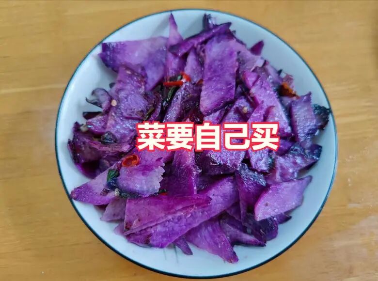 王新峰更喜欢吃紫色的脚板薯,在网上买了一斤,前来做饭的阿姨看到这个食材后有点懵圈,不知道此物是啥?