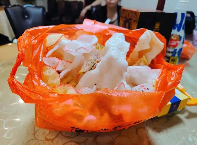 在江西赣南地区,不管随礼50块还是1000块,你都是主人的贵客,吃的宴席菜品都是一样的,在宴席刚开始前,往往桌子上会有一个红色的塑料袋。