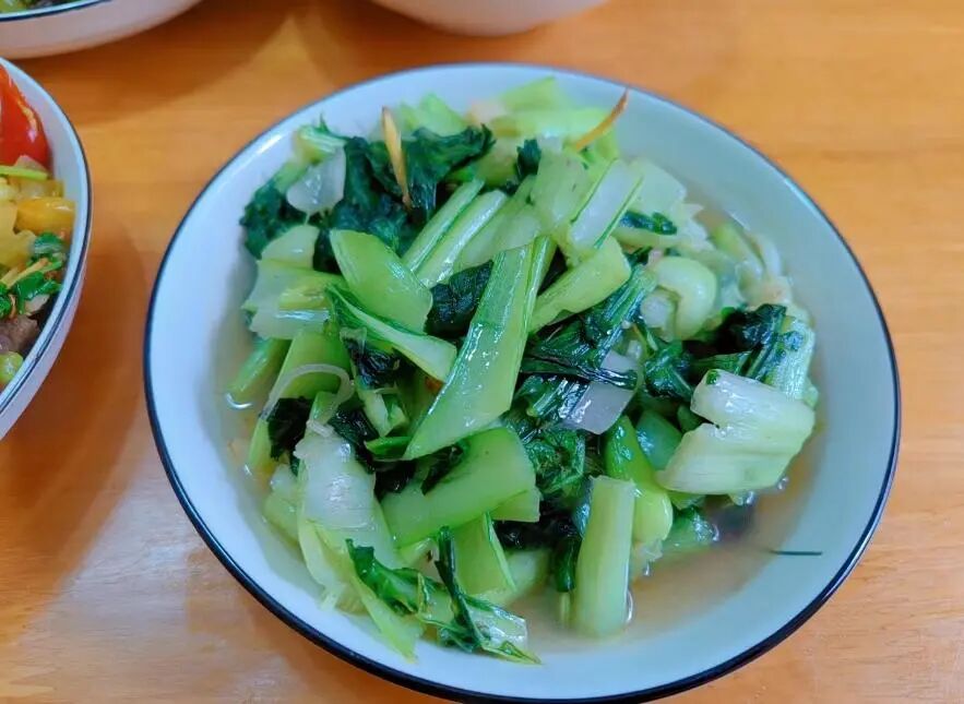 最后一道菜是炒上海青,江西人很爱吃辣,但也爱吃青菜,在江西有句老话:“要想生活过得去,餐桌上要加点绿!”