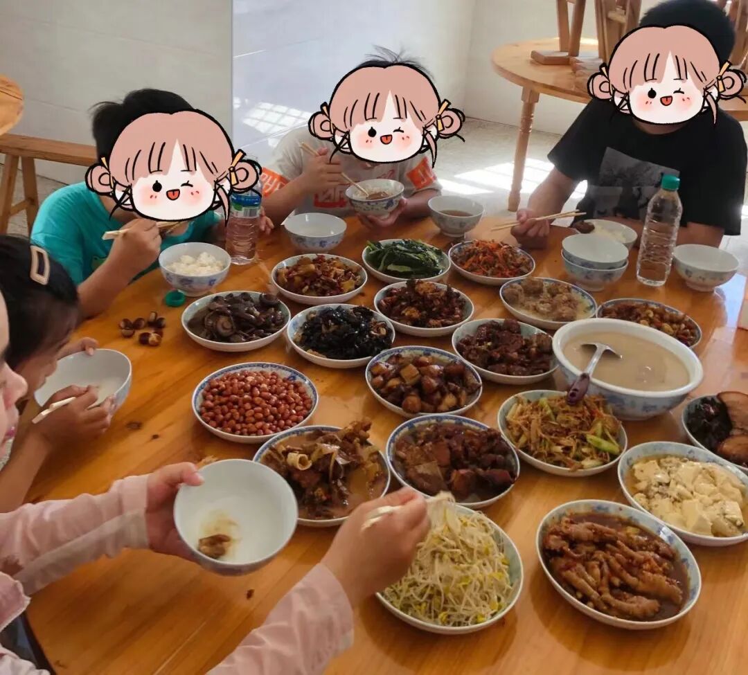 在酒席上一般都是大人小孩年轻群体大家都会分开坐,年轻人一桌,小孩一桌,中老年人一桌,饭桌上的啤酒鸭是王贤德很爱吃的美味菜品。