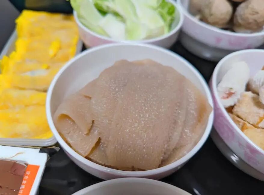 毛肚也是吃火锅必备的食材,李秀英选用的是素毛肚,虽然口感比纯毛肚差一点,但是价格实惠,吃起来没负担。