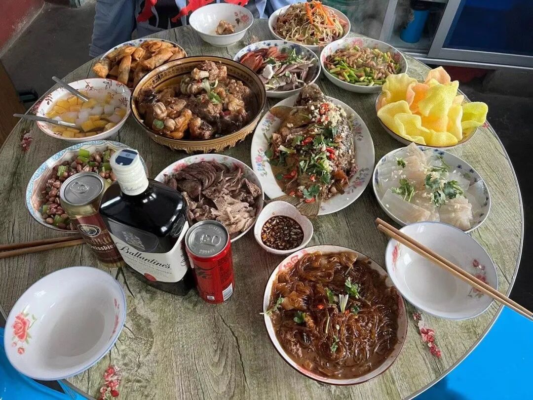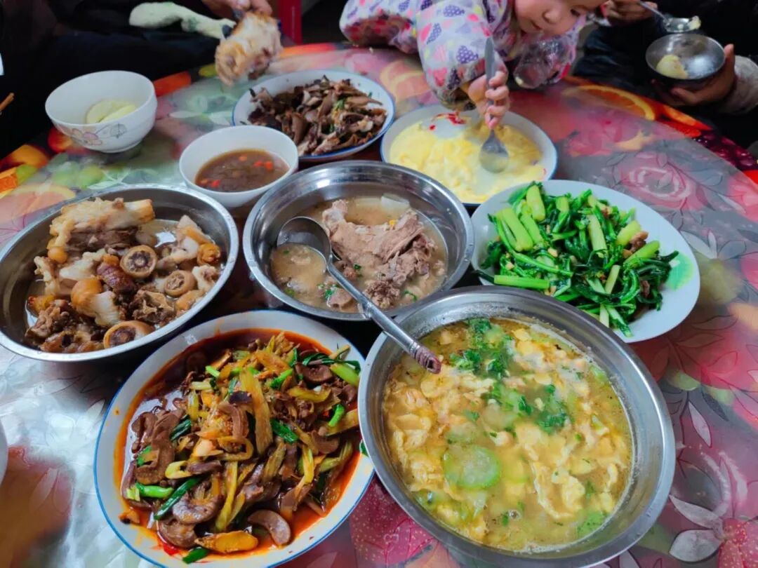 菜肴分量大,就连饭碗也比南方人的大了两三倍,让人看后想起了东北人大口吃肉,大口喝酒的喜庆画面。