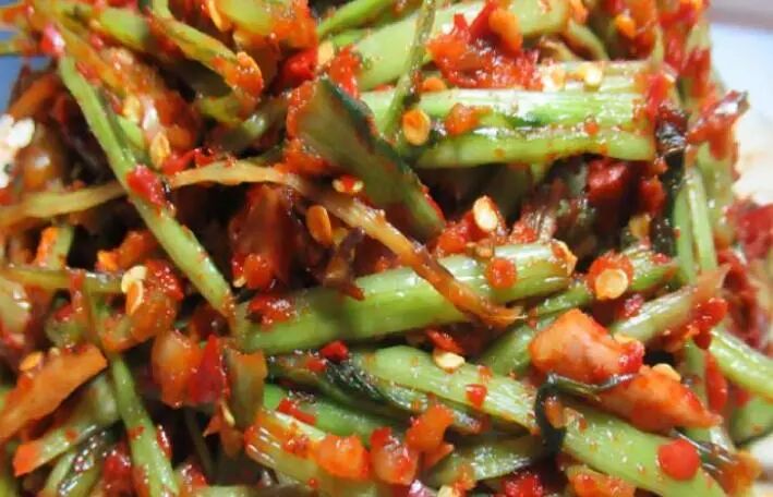 临川人将菜梗和辣椒食用盐放入一起腌制,形成了辣中有咸、咸中带甜的独特风味,咬上一口,清香扑鼻很是美味。