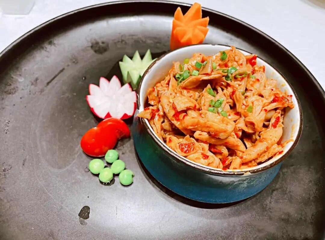 江西人都很爱吃辣,香辣无骨凤爪,一上桌后,大家都抢着吃,鸡爪爽脆有嚼劲,口感Q弹,袁江林和同学们都很爱吃。