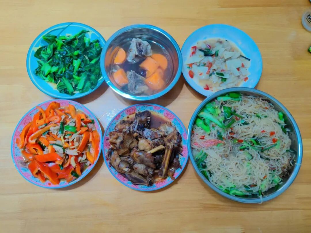 剪辑完视频后,余平海便要负责做午餐,午餐也比较简单,有余平海爱吃的蒸蛋,有老爸爱吃的腐竹炒牛肉,有老妈爱吃的鸡肉,还有红烧肉,清炒包菜,紫菜鸡蛋汤。