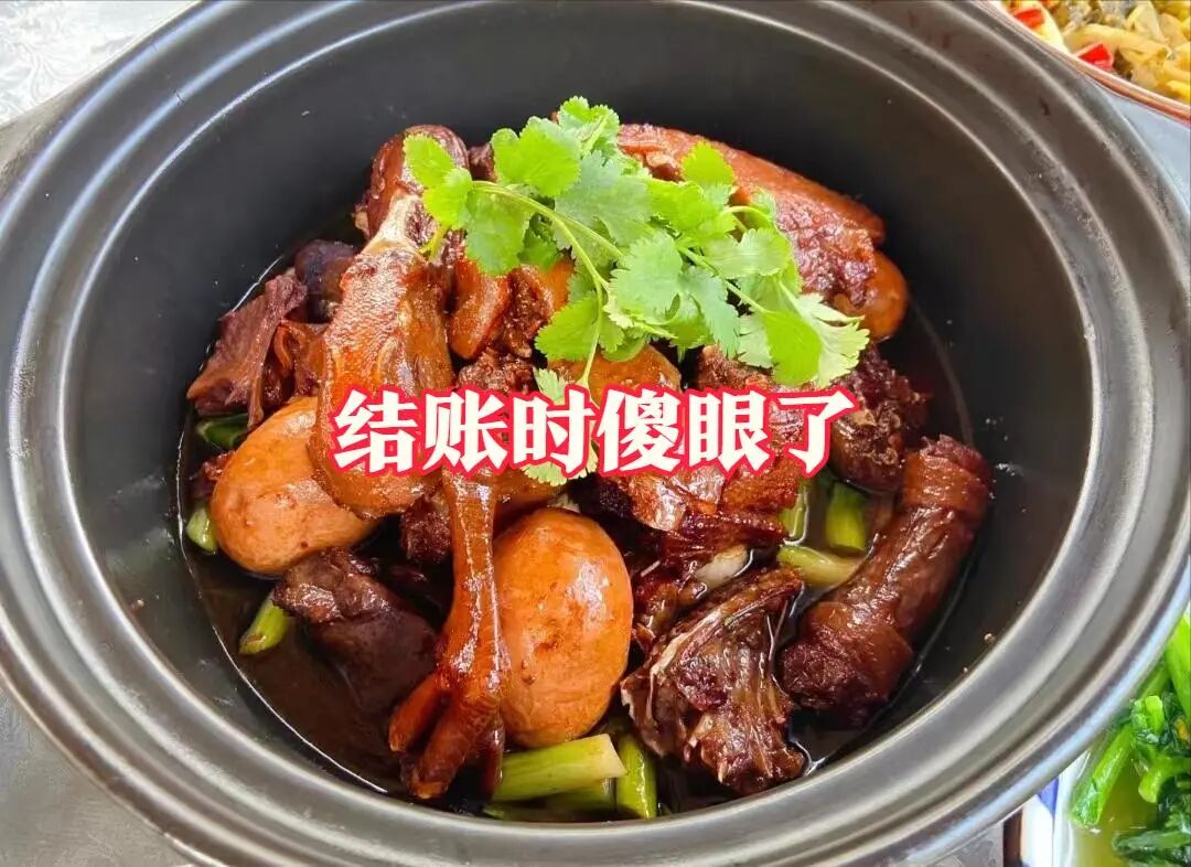 第二道菜是麻辣鸭,这道菜上桌后,刘晓峰有点疑惑,这哪里有麻辣?连花椒都没有放,吃起来就是正常的红烧味,只不过里面放了两个卤蛋进去。