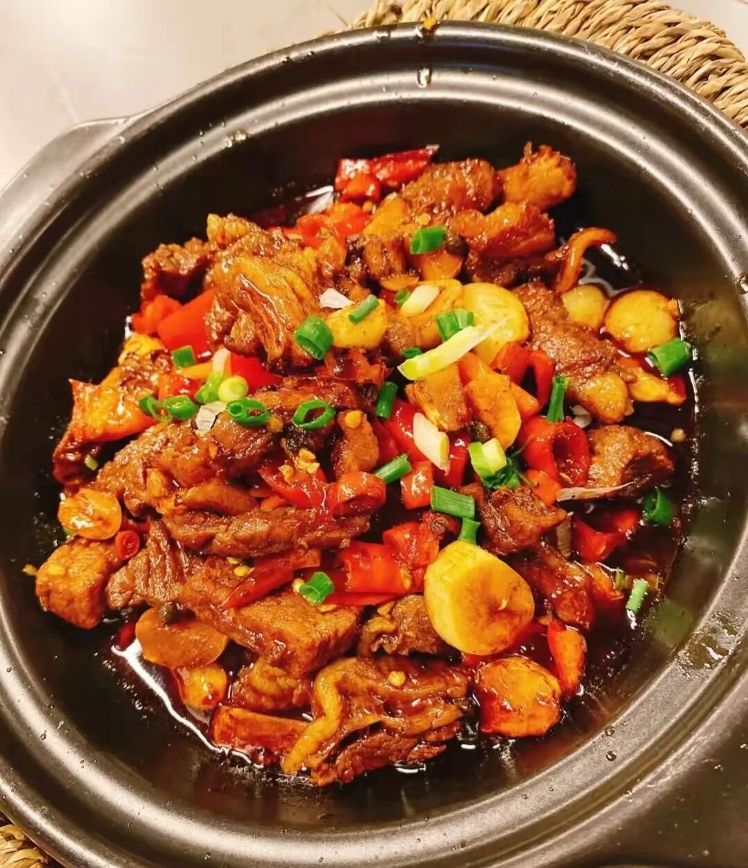 啤酒鸭这道菜品也放了很多的小米辣,汤汁也是红油状,这次罗耀贵学聪明了,没有直接去吃鸭肉,而是用筷子夹了一个蒜头吃了起来。