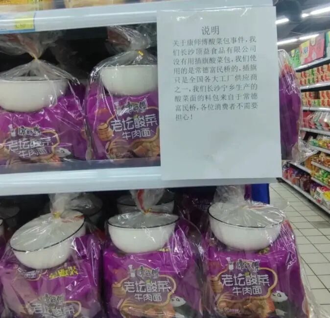 “土坑酸菜”的影响仍旧在继续,虽然在不少超市的货架上,在老坛酸菜方便面的旁边贴出了各种解释说明,但是消费者们却并不买账。