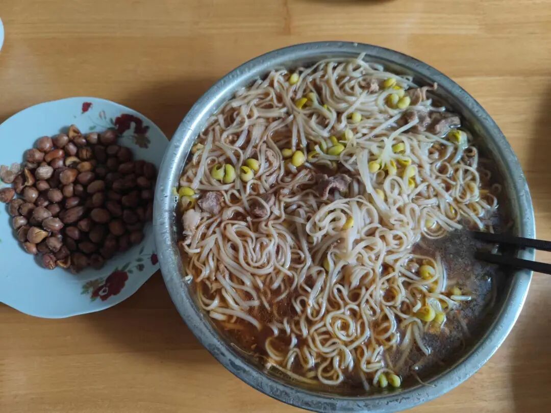 有时候工作太累,回到家便不想再去炒菜煮饭了,于是便煮一碗粉面,新婚夫妻二人便凑合着吃了。