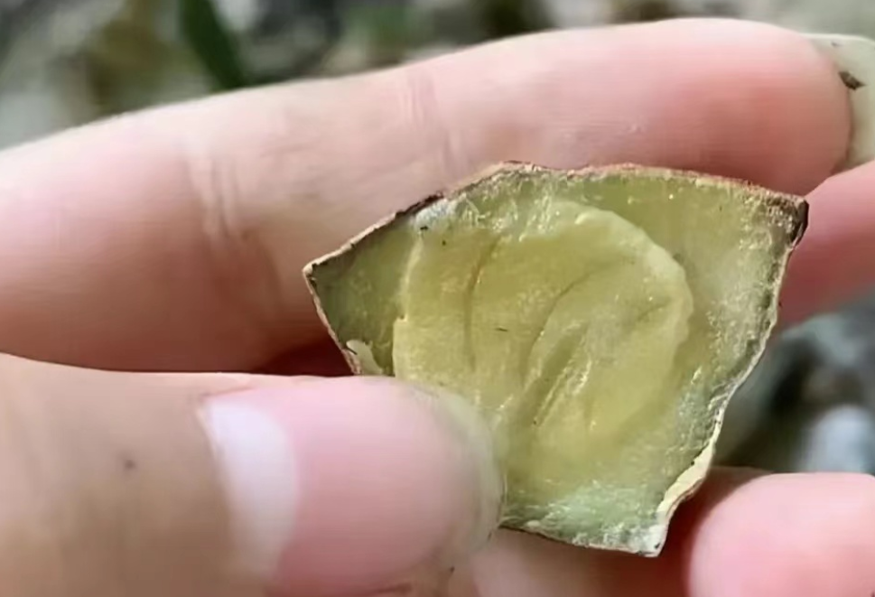 就在我犹豫不决的时候,另一位女同事建议我掰一块看看。我听了她的建议,伸手去扒拉那块“石头”,结果一掰就断了,露出了里面白白的果肉。我惊讶地发现这原来不是石头,而是一种植物!