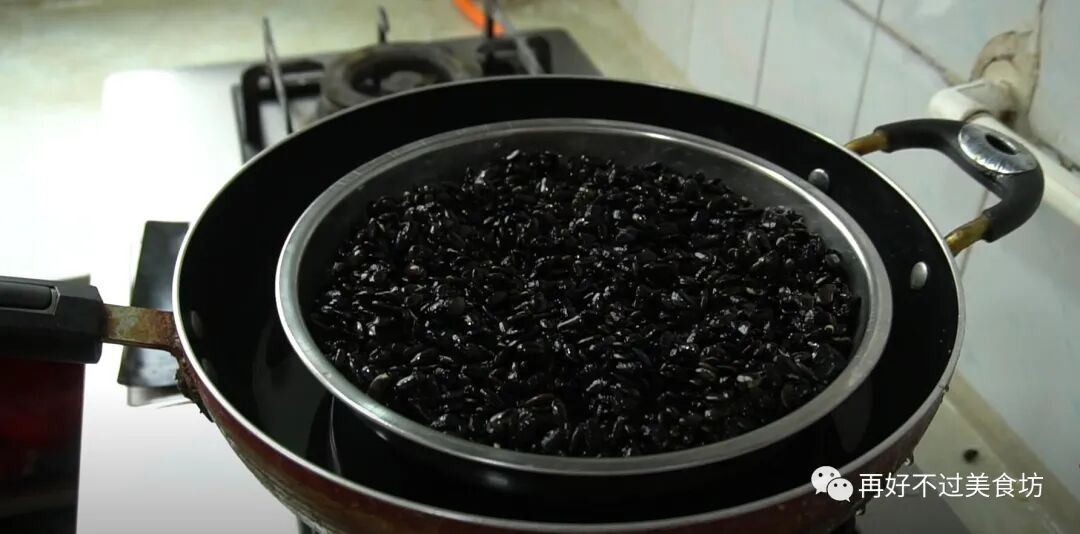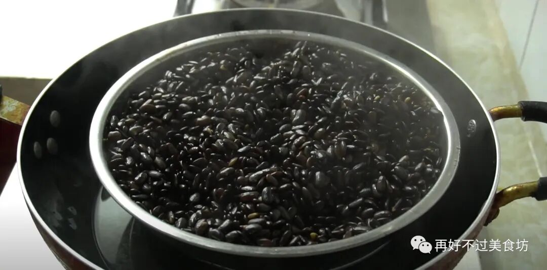 4、黑豆蒸好以后,将其取出来放一旁等着备用。