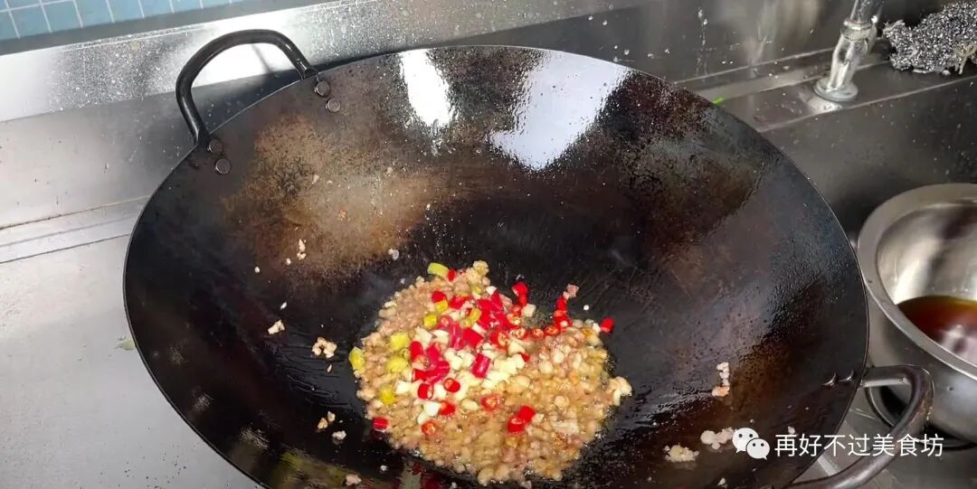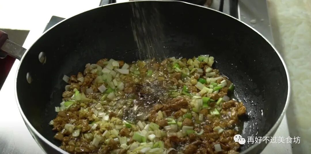 7、加入葱姜蒜末继续炒香,加一点五香粉,胡椒粉,一点料酒,生抽,适量的盐调味。