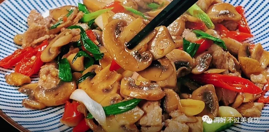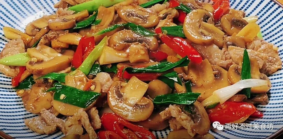 主要食材:白蘑菇、红辣椒、青蒜、里脊肉、姜蒜