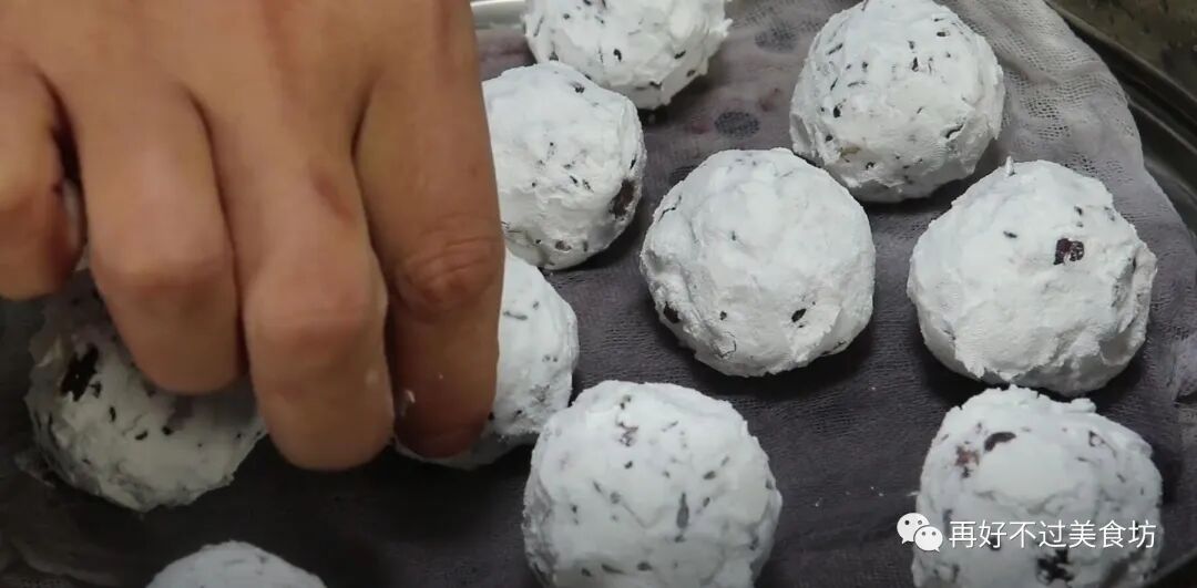 8、盘中倒入淀粉,放上丸子,滚动一下,让丸子均匀包裹上淀粉,处理好之后放入笼屉,盖上盖子,水开后大火蒸20分钟。