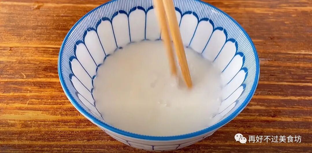 11、下面再准备一只小碗,加入一勺淀粉,再加入适量的清水,用筷子先搅拌均匀,放一边备用。