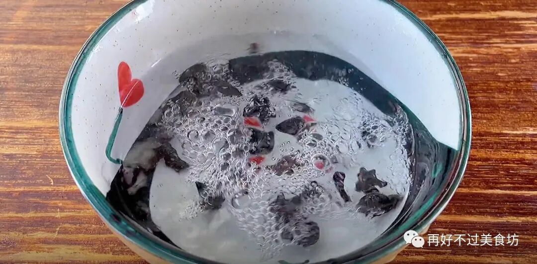 4、再准备一个碗,放入干木耳,加入温水把它泡发。