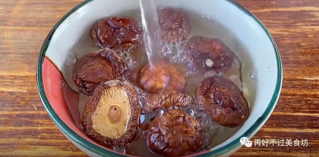 3、下面再准备一个碗,放入一把干香菇,加入热水把它泡发。