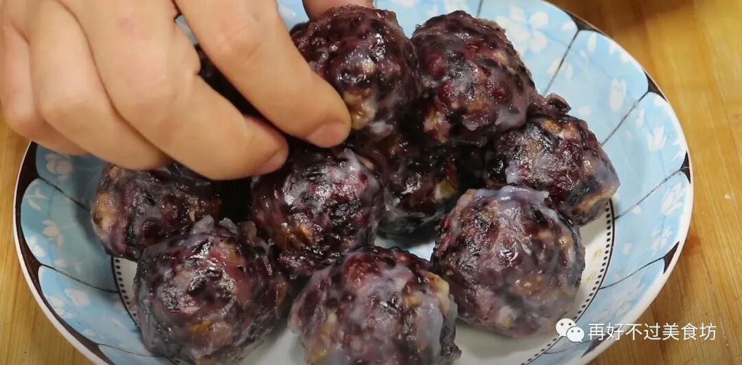 9、时间到了,取出来装入盘中,美味的黑米红豆包就做好了,这样做出的红豆包软糯香甜,吃起来香甜Q弹,还有核桃的清脆,喜欢的朋友,赶紧试试吧。