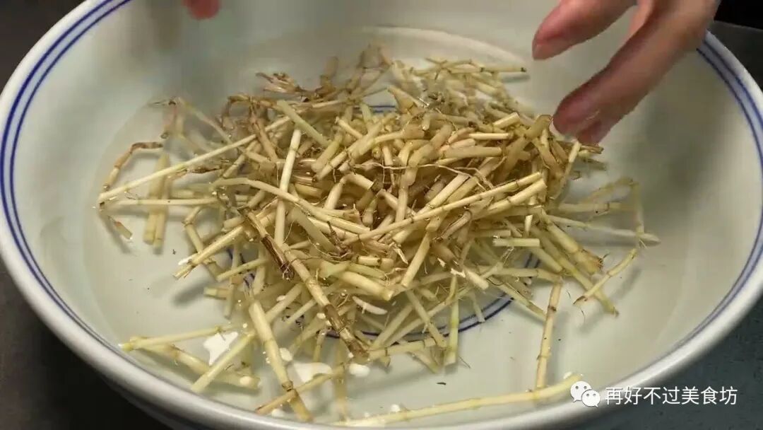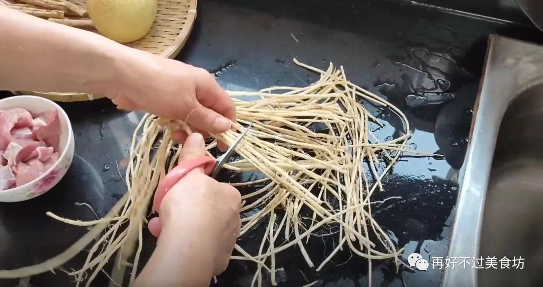 3、下面把白茅根剪断,因为太长了,等下不方便煮,剪好后,也放一旁留着备用。