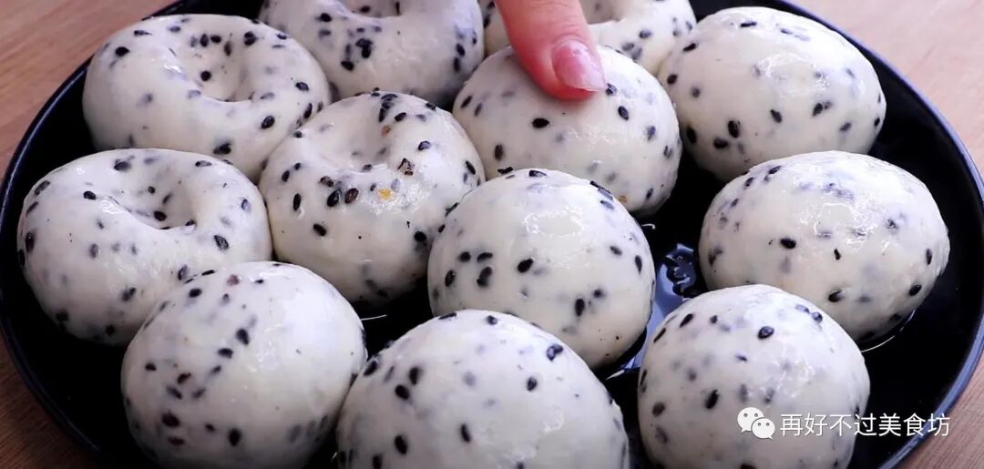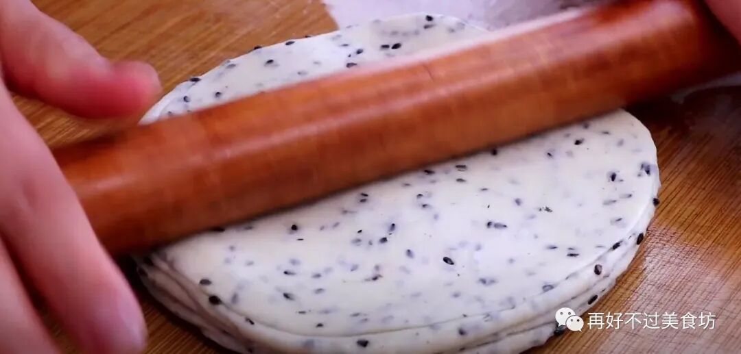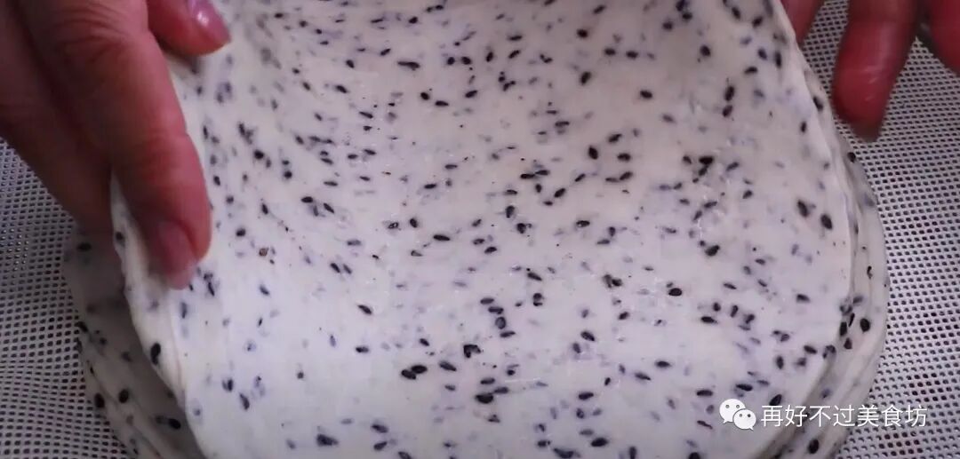 11、这样做的黑芝麻蒸饼一点也不会油腻,皮薄如纸,柔软筋道,平常我们多吃一点黑芝麻,对身体也是特别的好。