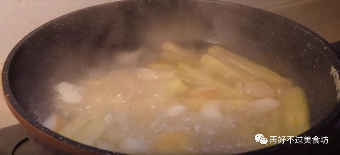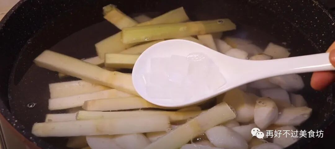 5、切好之后放入凉水中,水没过食材,再根据个人的喜好加入适量的冰糖,因为食材本身是甜的,所以完全可以不用加糖。