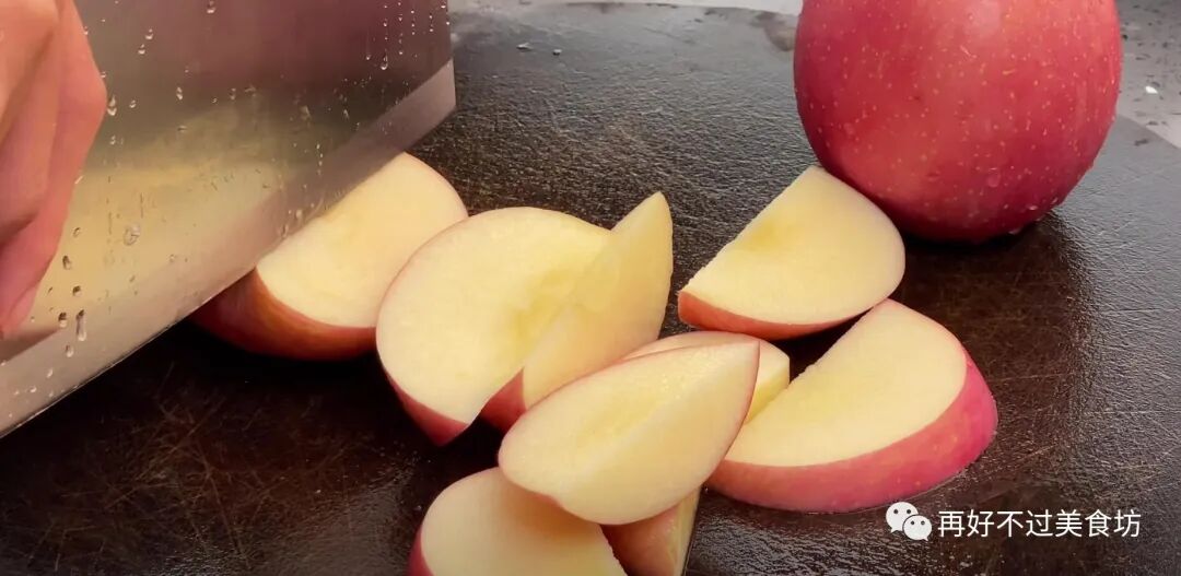 1、首先准备一个苹果,用水清洗干净之后,不用去皮,直接切成小块,放碗里留着备用。