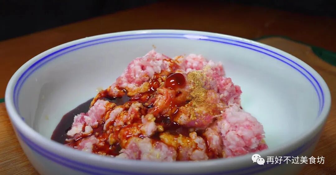 7、接着打入一个鸡蛋,这样做能使肉馅更加的滑嫩,再次给它抓均匀后,加入适量的生粉,加入生粉,水分不会流失,肉馅会更加的好吃,最后把调好的肉馅一点点塞进苦瓜里。