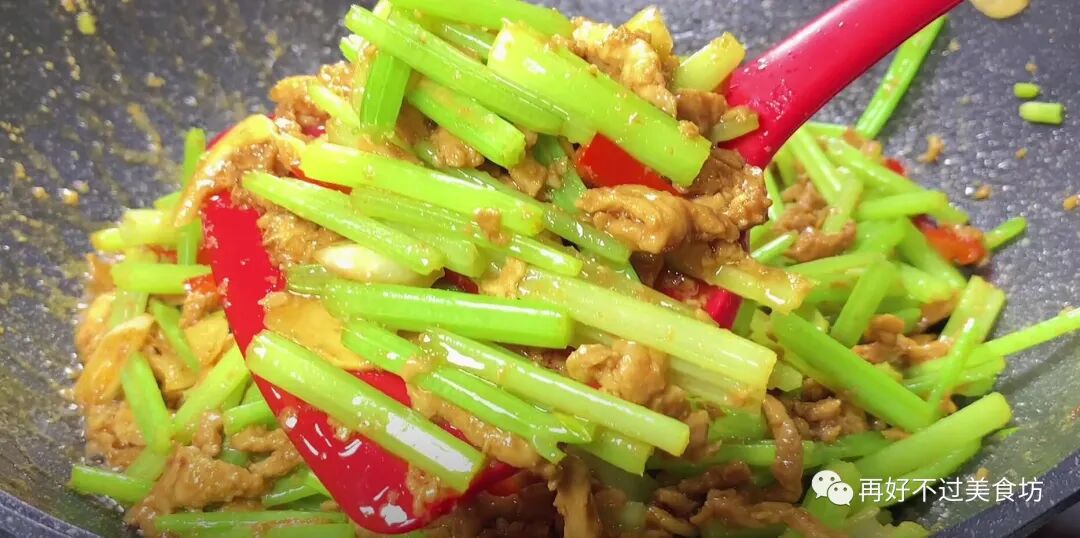 10、一道非常好吃又下的芹菜炒肉丝就做好了,芹菜鲜嫩翠绿。鲜香滑嫩,真的是非常的好吃,芹菜炒肉丝的小技巧你学会了吗?