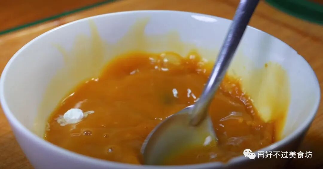 4、碗中打入一个鸡蛋,搅拌均匀备用,再在碗中倒入50克的马蹄粉或者藕粉,加入100克的清水搅拌均匀,放在旁边备用。